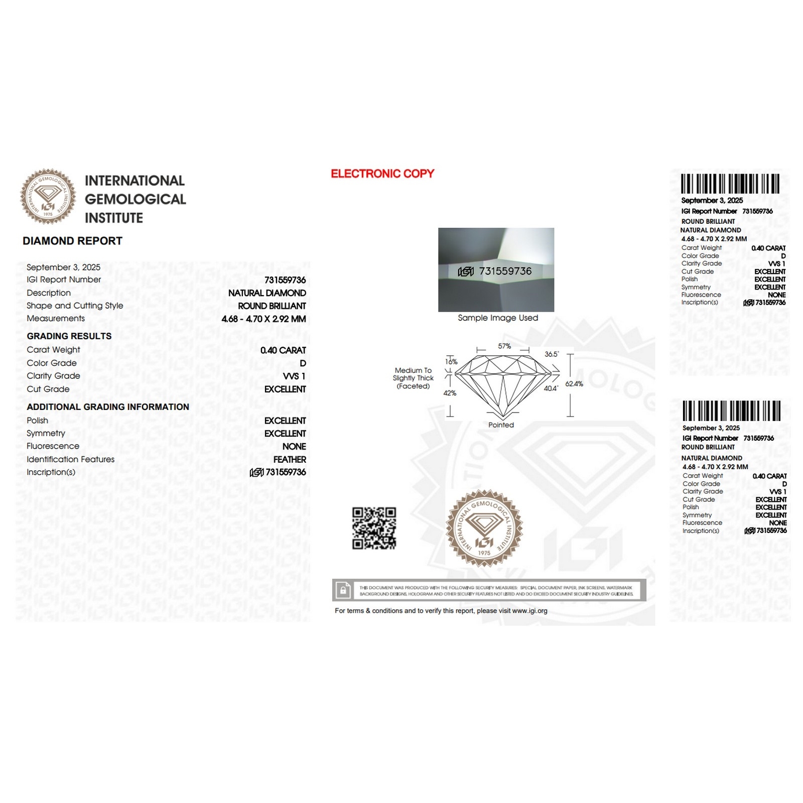 Diamante certificado IGI 0.40 CT D VVS1