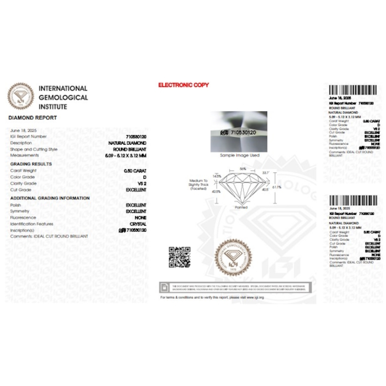 Se expide para cada joya vendida en línea y en nuestras tiendas y certifica las siguientes características: