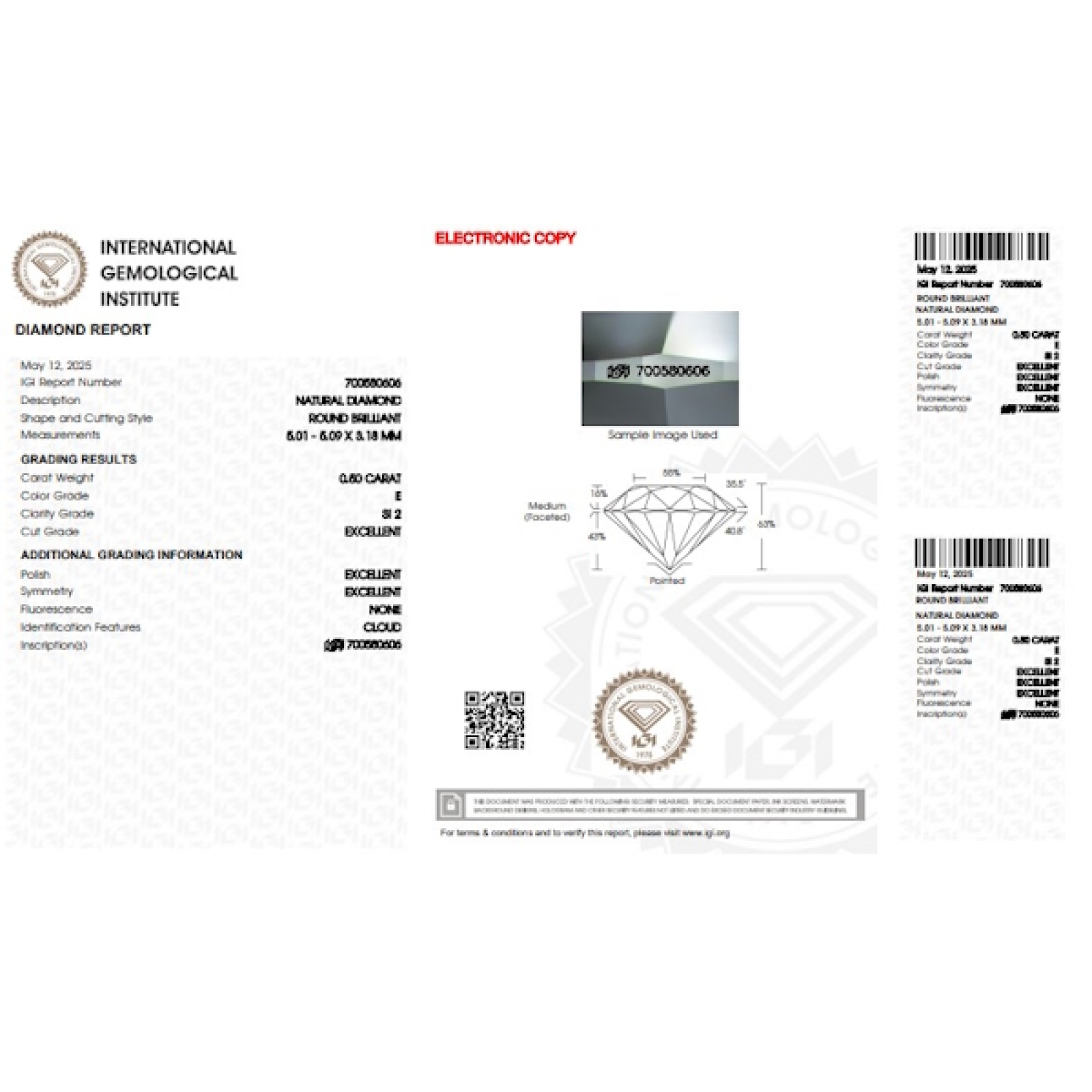 Se expide para cada joya vendida en línea y en nuestras tiendas y certifica las siguientes características: