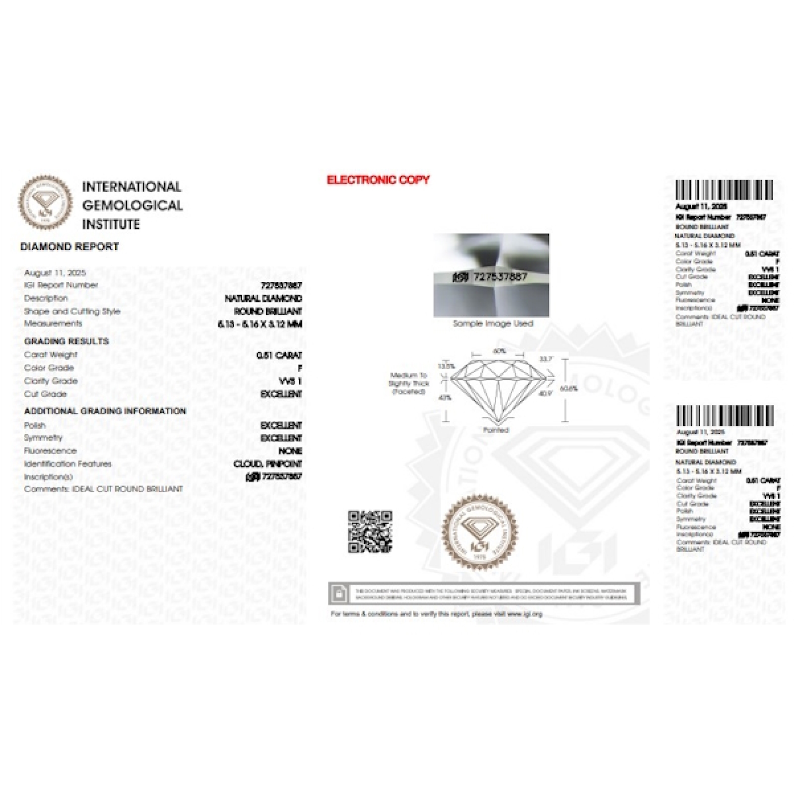Se expide para cada joya vendida en línea y en nuestras tiendas y certifica las siguientes características: