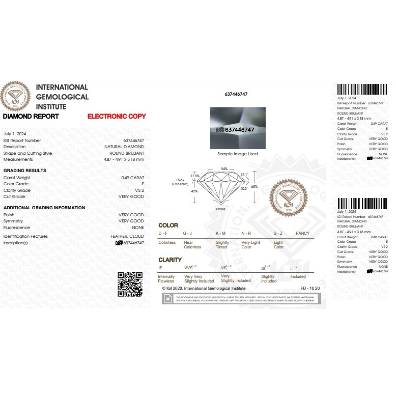 Anillo compromiso oro blanco 18k con diamante certificado IGI 0.49 CT