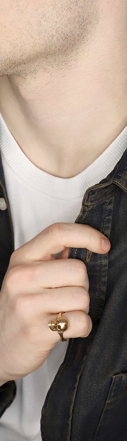 Anillo con calavera móvil en oro rosa 18k y diamantes