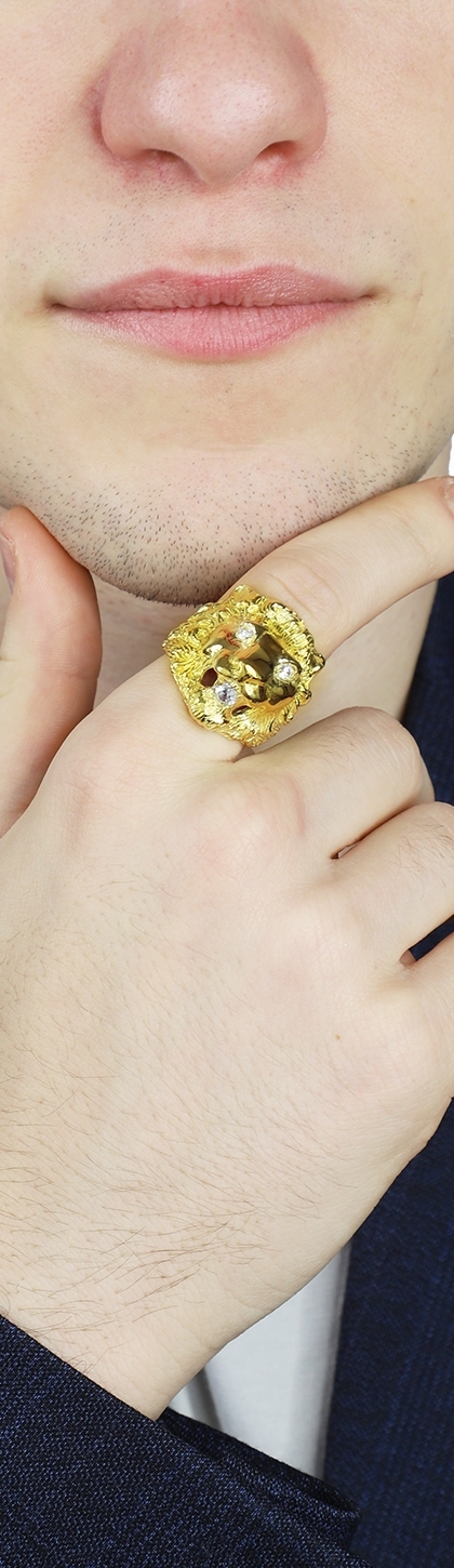 Anillo con león en oro amarillo de 18k con circonitas