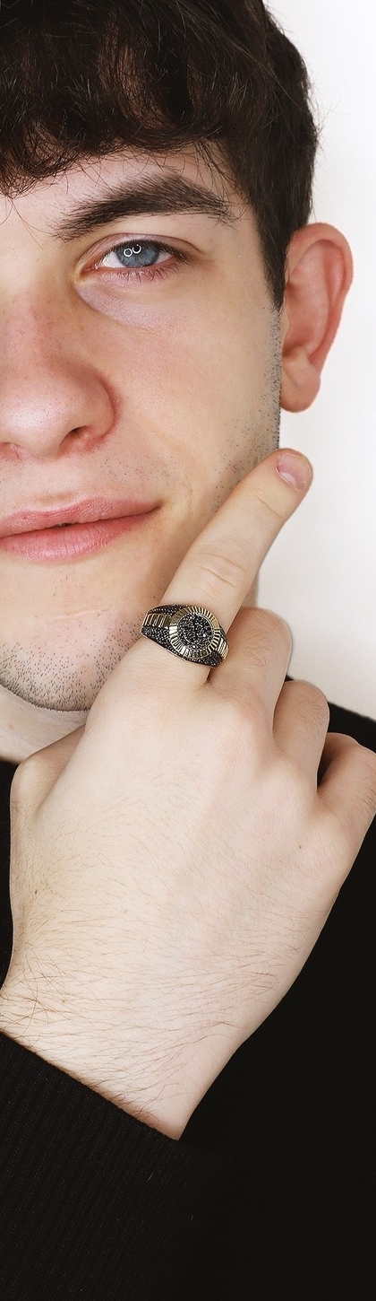 Anillo de Hombre en Oro Amarillo 18k con Circonitas Negras