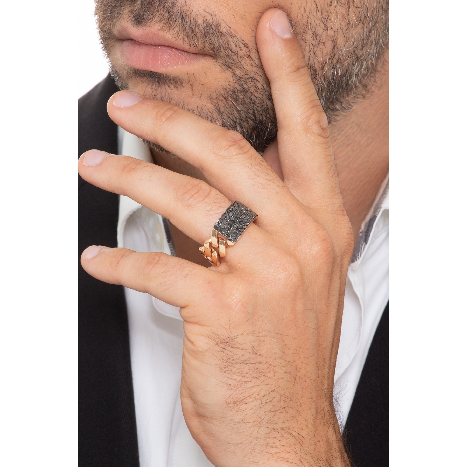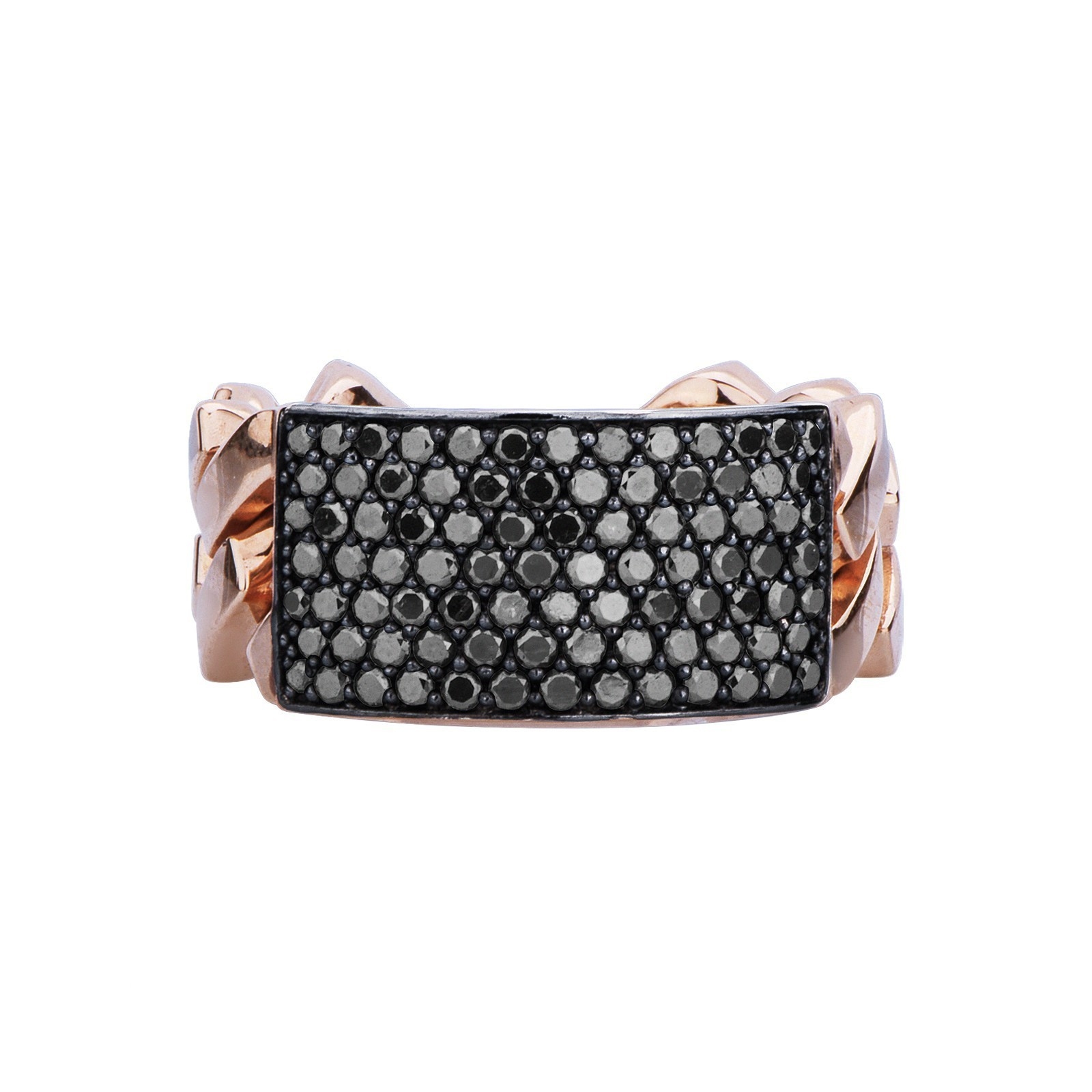 Anillo hombre gourmette en oro rosa 18kt con diamantes negros