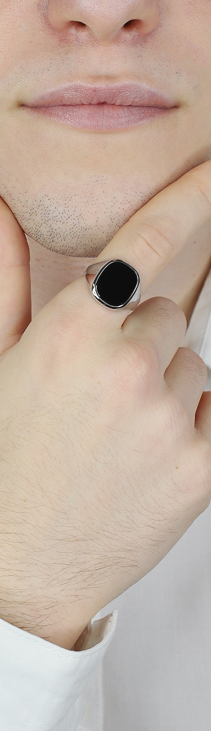 Anillo hombre oro blanco de 18k con cuadrado negro