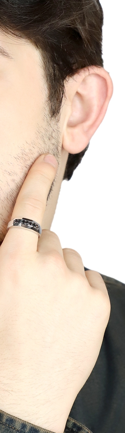 Anillo para hombre en oro blanco 18k siete diamantes negros