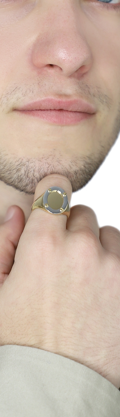 Anillo de hombre ovalado en oro blanco y amarillo 18k