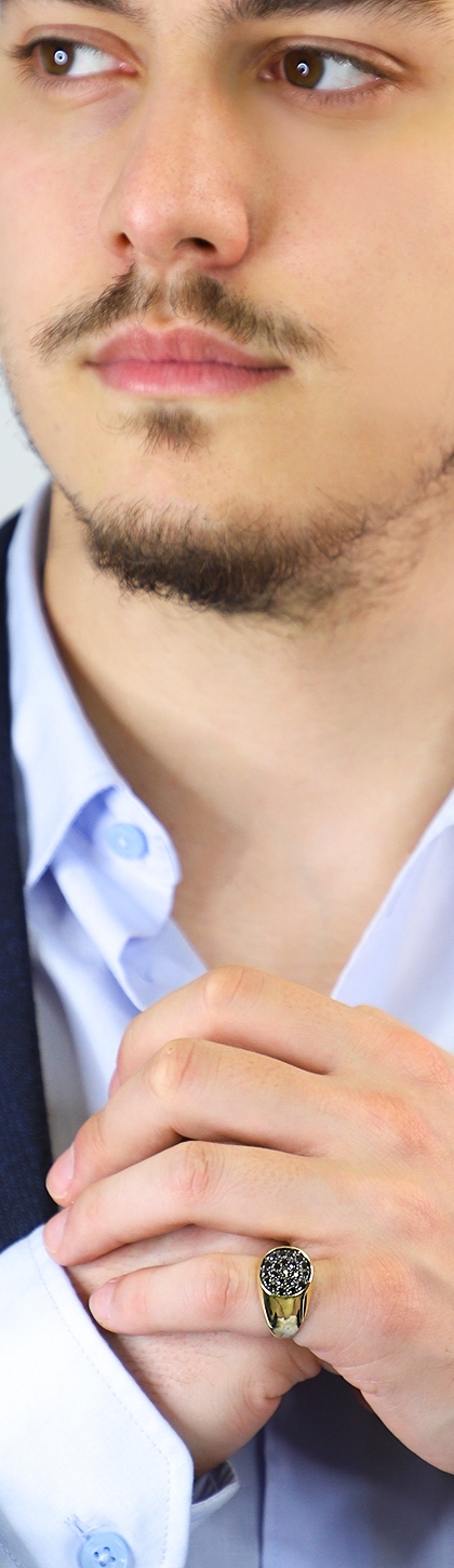 Anillo hombre oro amarillo de 18 quilates con diamantes negros
