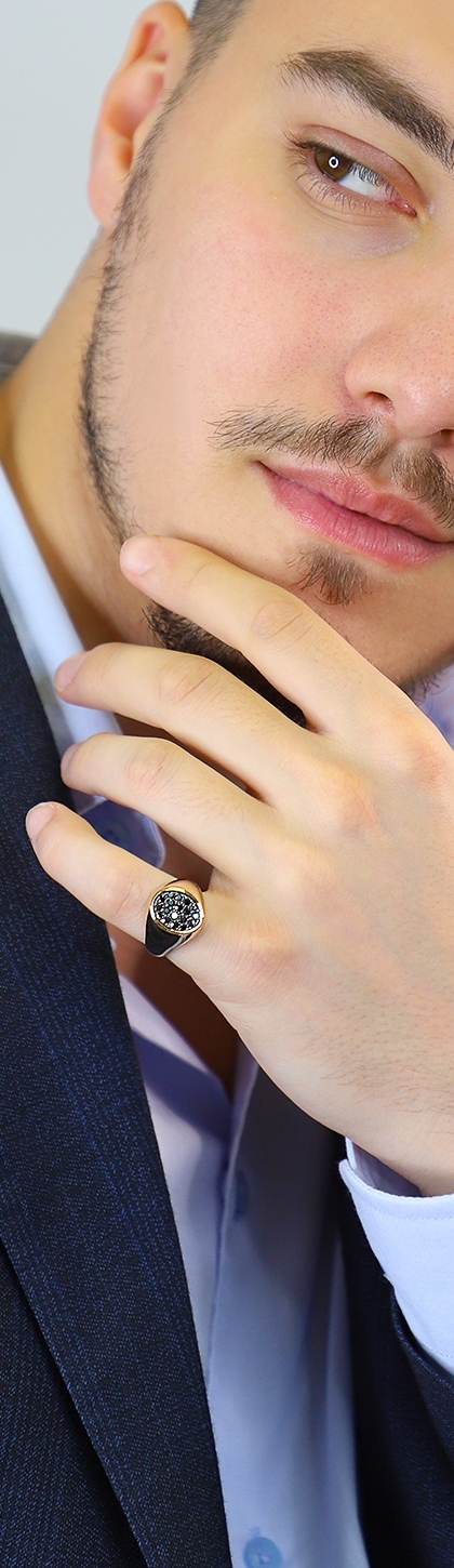 Anillo hombre pavé en oro rosa 18k con diamantes negros
