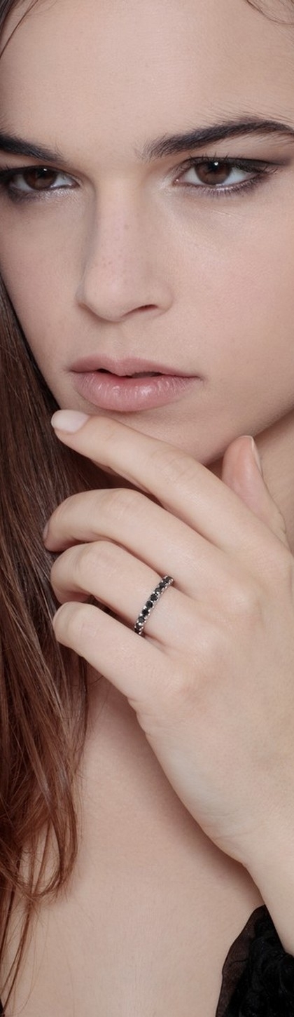 Anillo riviere en oro blanco de 18k con diamantes negros