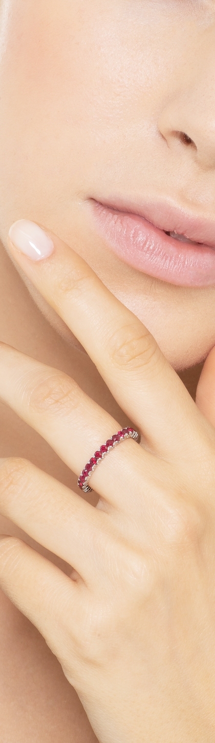 Alianza completa de eternidad con rubí de 18 kilates