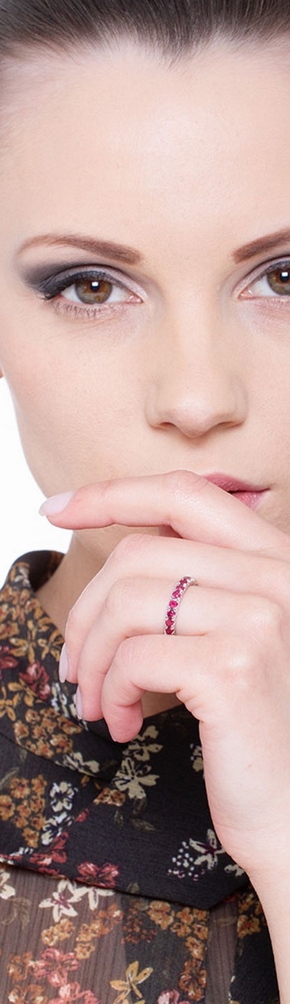Anillo de eternidad en oro blanco 18 kilates con rubíes