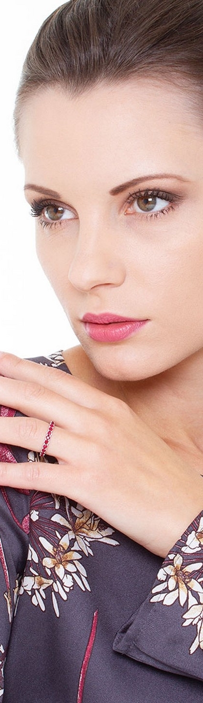 Anillo de eternidad en oro blanco 18 kilates con rubíes