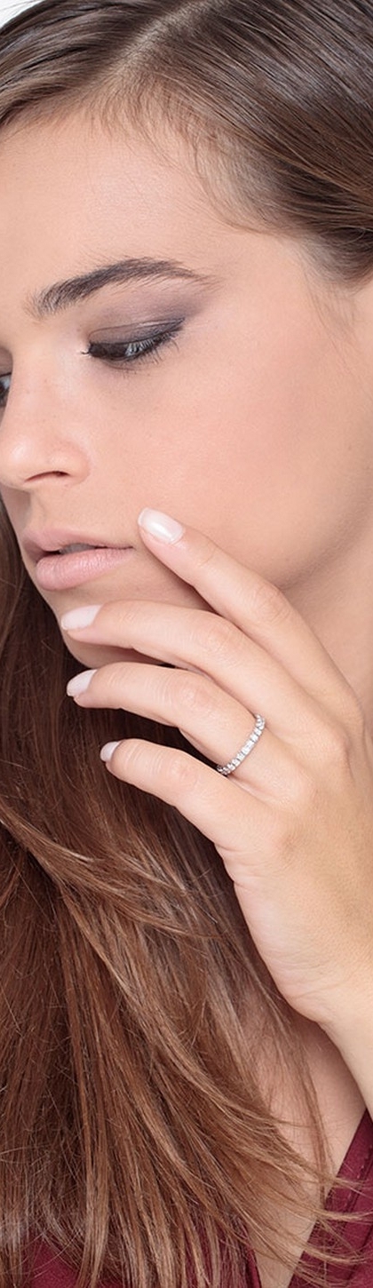 Anillo de eternidad engastado con diamantes en oro blanco de 18 kilates