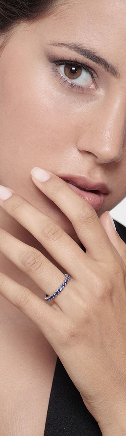 Anillo de eternidad zafiros azules en oro de 18 kilates