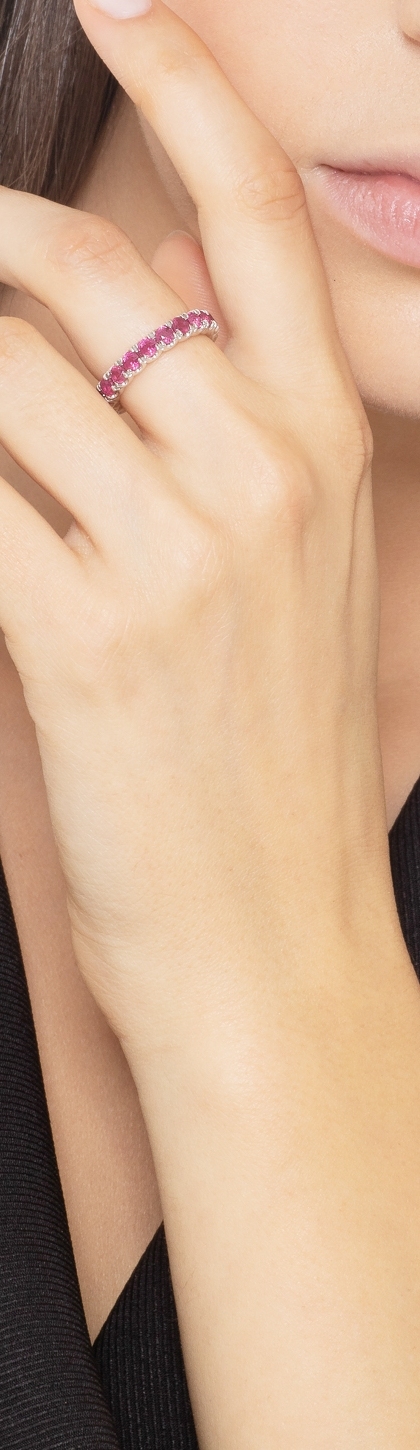Anillo de eternidad en oro blanco 18 kilates con rubíes