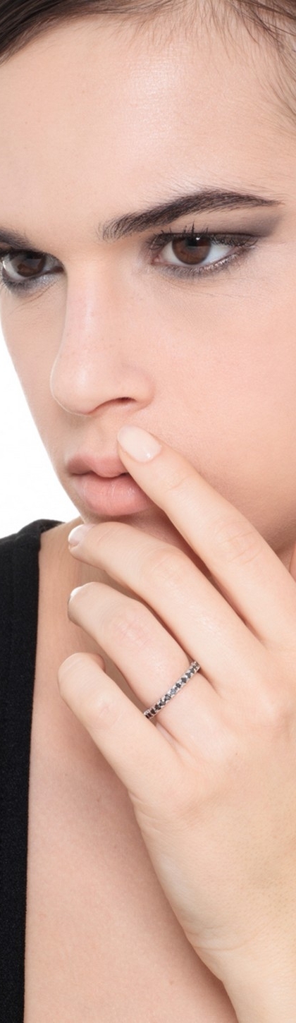 Anillo Eternity a griffe en oro blanco 18k con diamantes negros