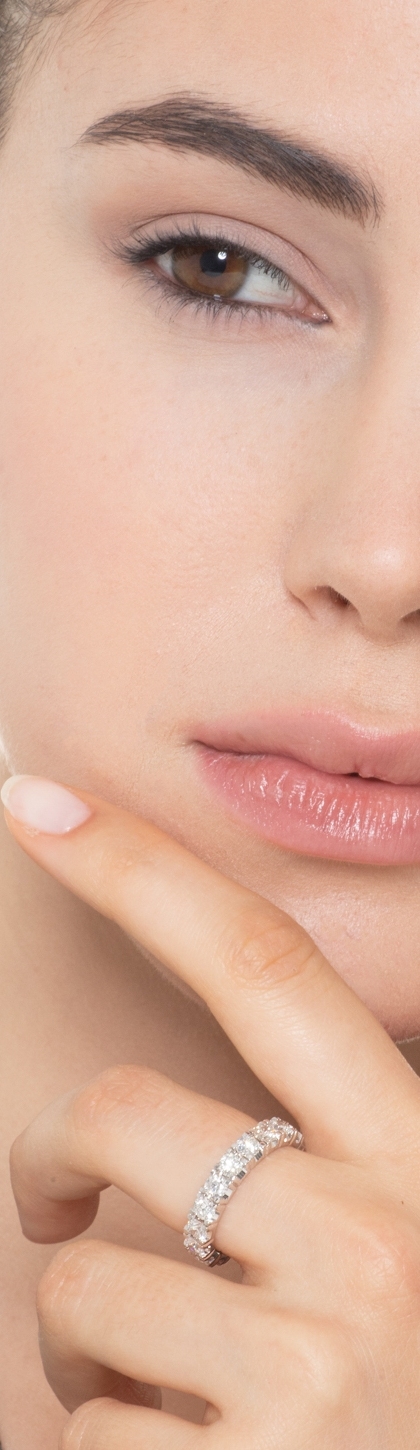 Anillo Eternity con garras en oro rosa 18k con diamantes
