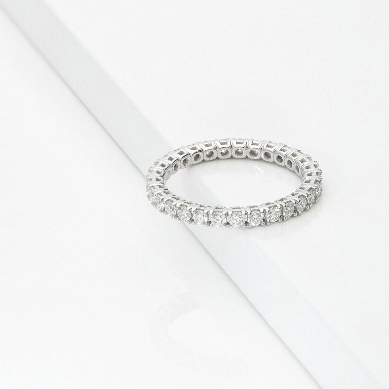 Anillo de eternidad en oro blanco de 18 kilates y diamantes