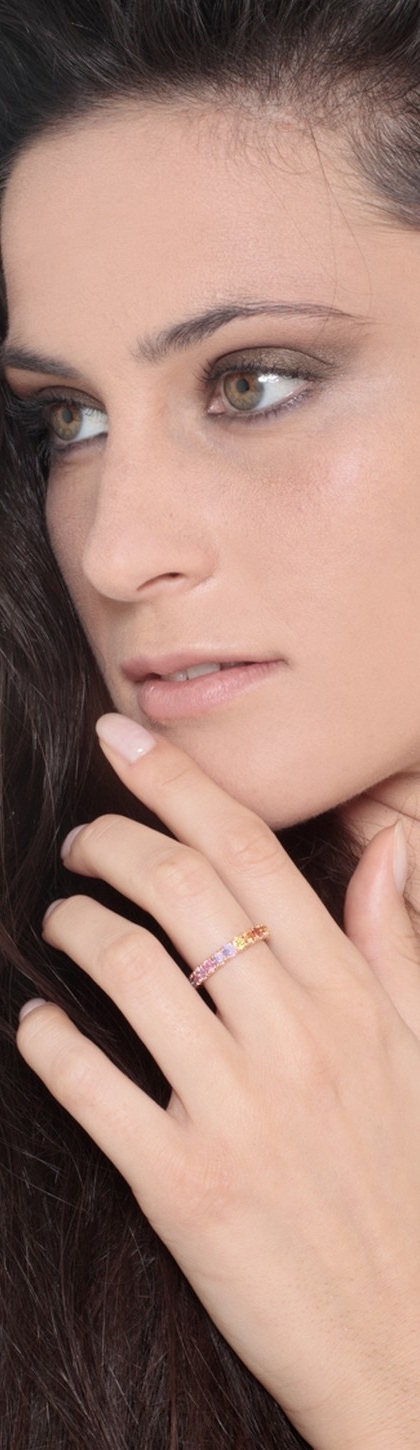 Anillo Eternity en oro rosa 18k con zafiros multicolor