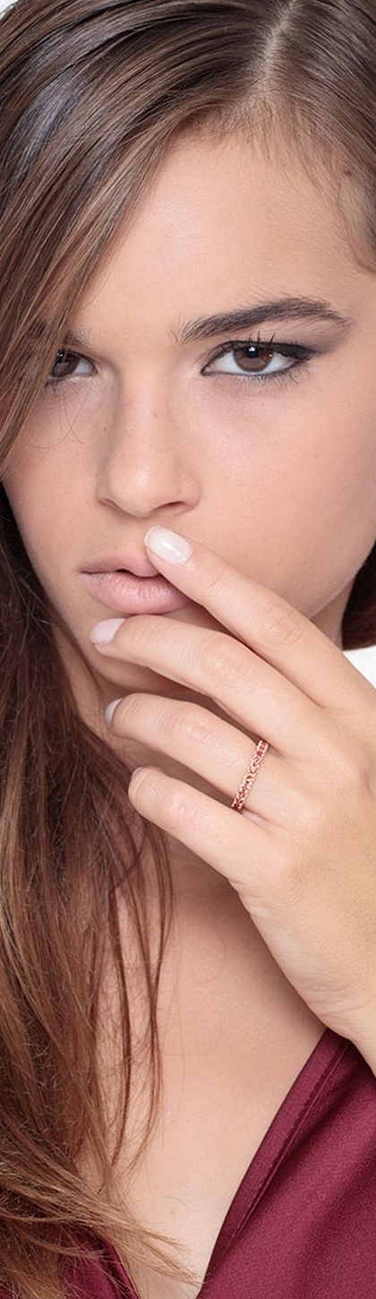 Fabricado en oro rosa 18k, este anillo Eternity evoca paseos al atardecer junto al mar, haciéndolo perfecto para tus noches de verano. El grosor de la banda hace que este anillo Eternity sea ideal para llevarlo solo.