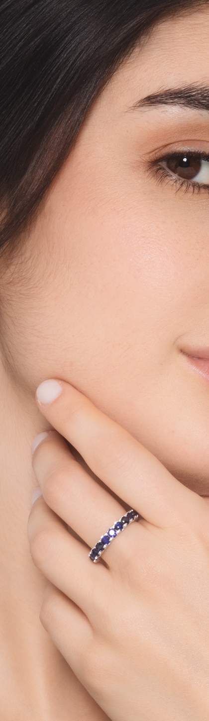 Anillo tipo Eternity en oro blanco con zafiros azules