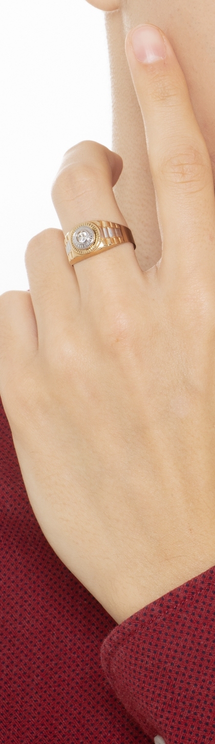 Anillo hombre Oro Amarillo y Blanco 18k circonita