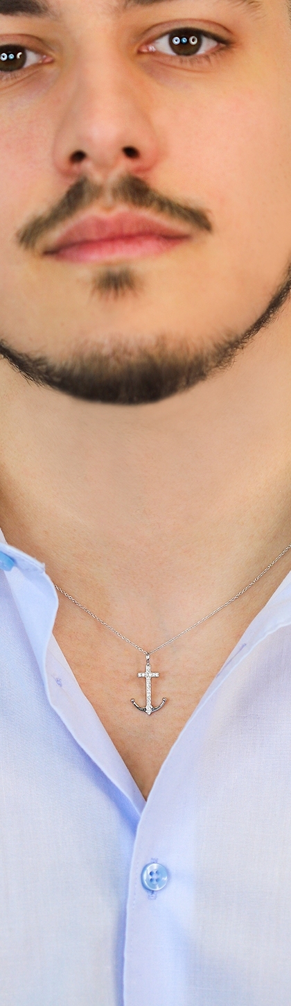 Collar en oro blanco de 18k con colgante en forma de ancla