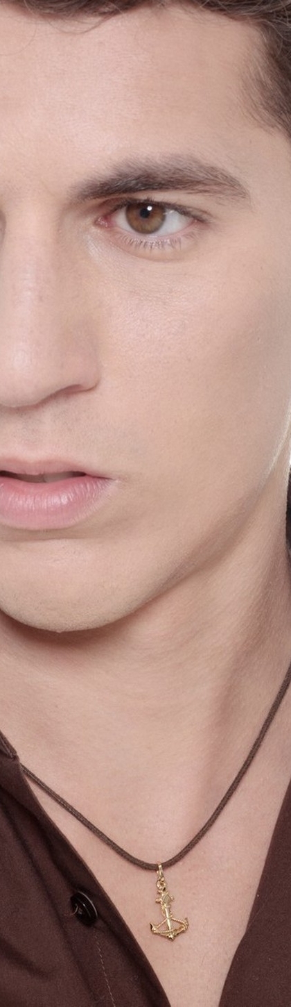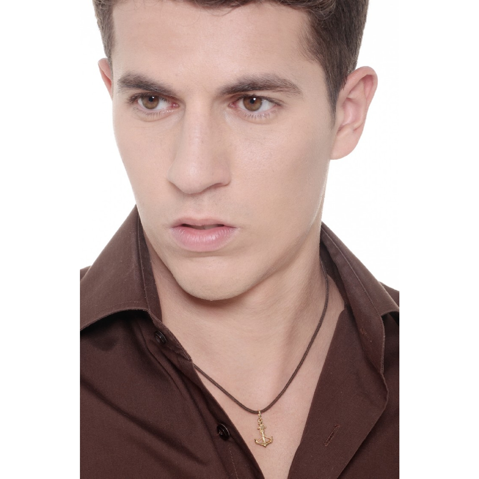 Colgante en oro amarillo 18k con forma de ancla y cuerdas, símbolo de fuerza y estabilidad.
