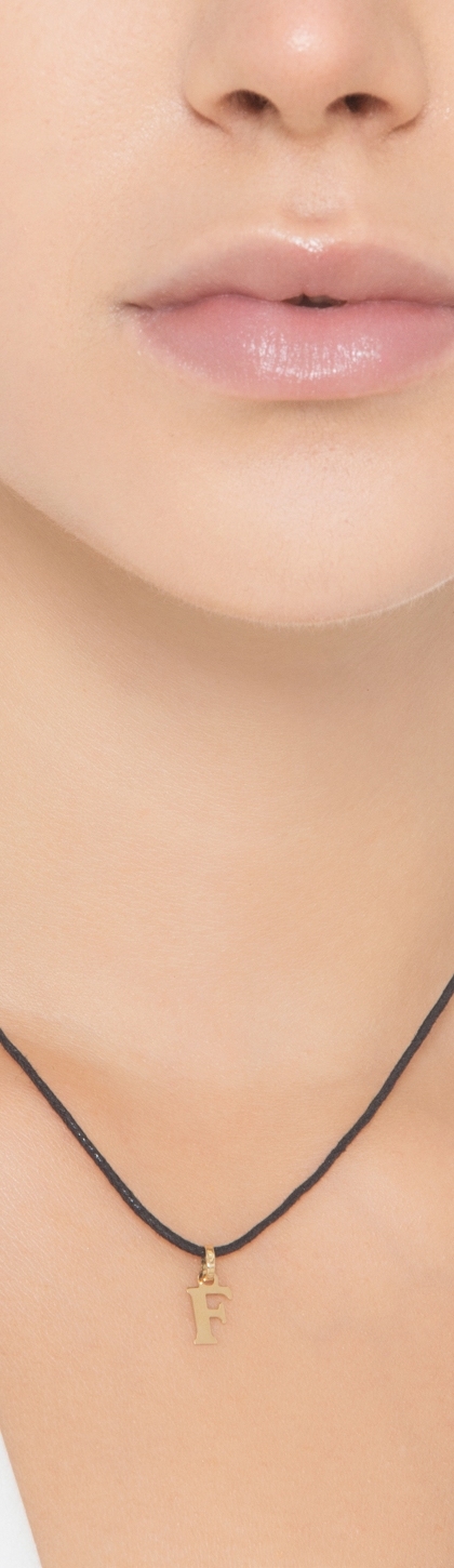Colgante con la letra inicial F en mayúscula en oro amarillo de 18 quilates.