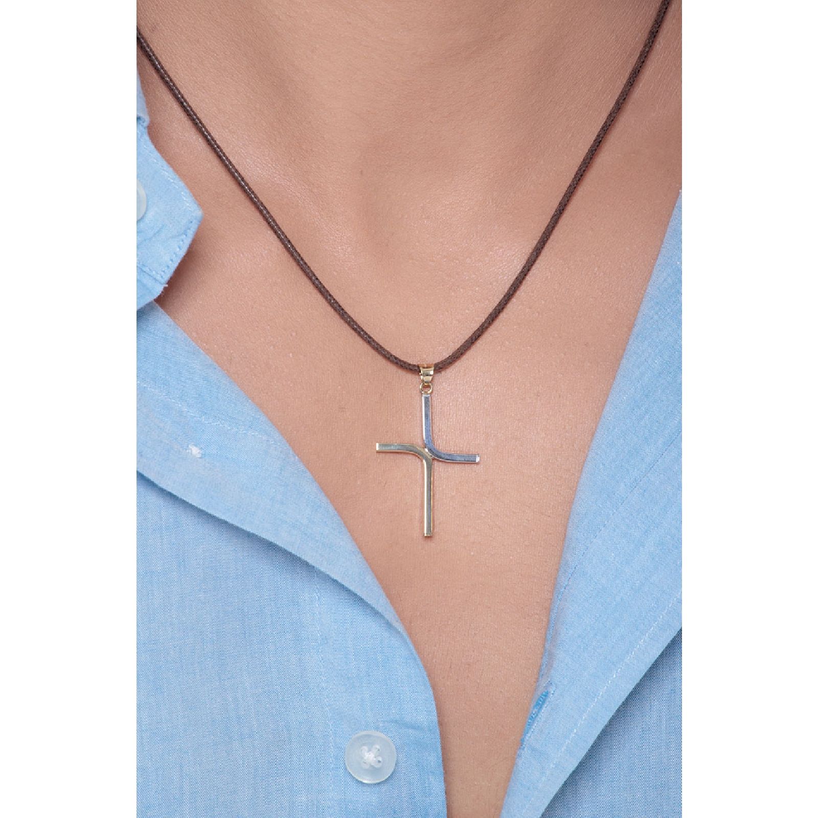 Colgante Cruz Estilizada en Oro Blanco y Amarillo 18k