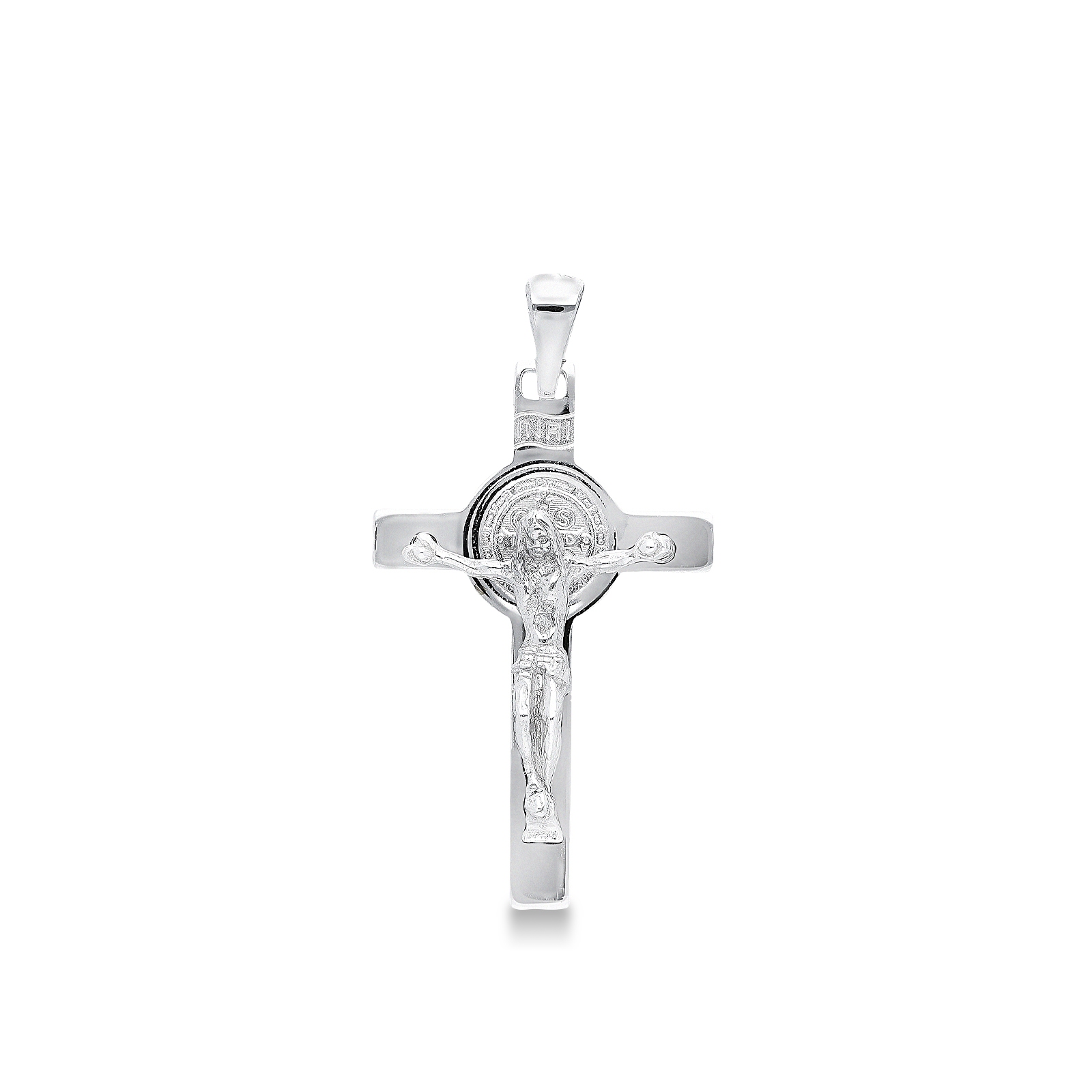Colgante elegante Oro Blanco 18k Cruz con Cristo