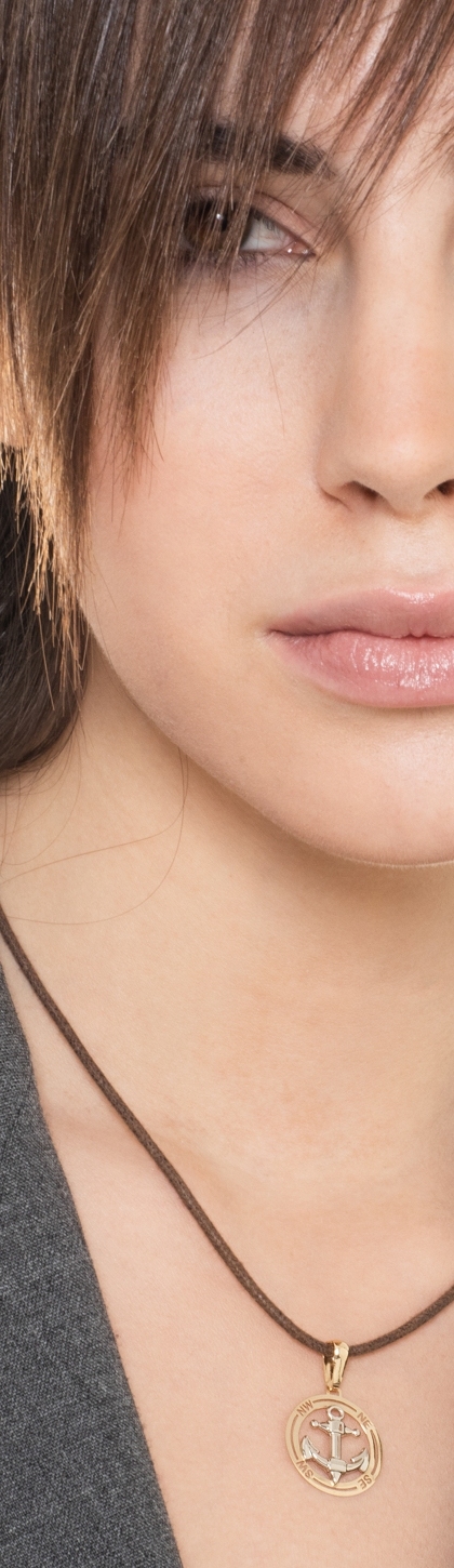 Colgante Rosa de los Vientos y ancla en oro blanco y amarillo 18k