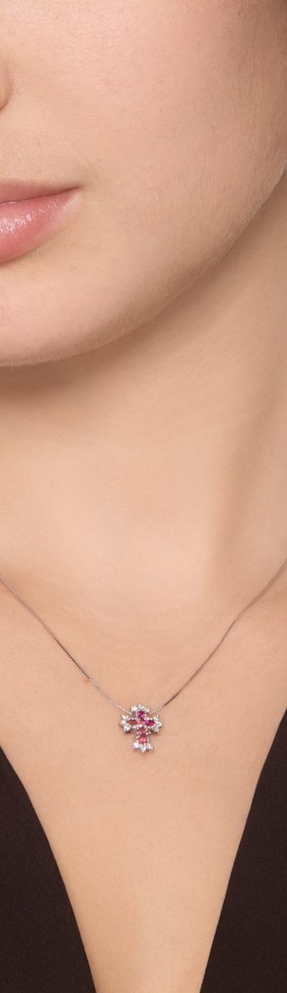 Collar cruz oro blanco de 18k de rubíes y diamantes