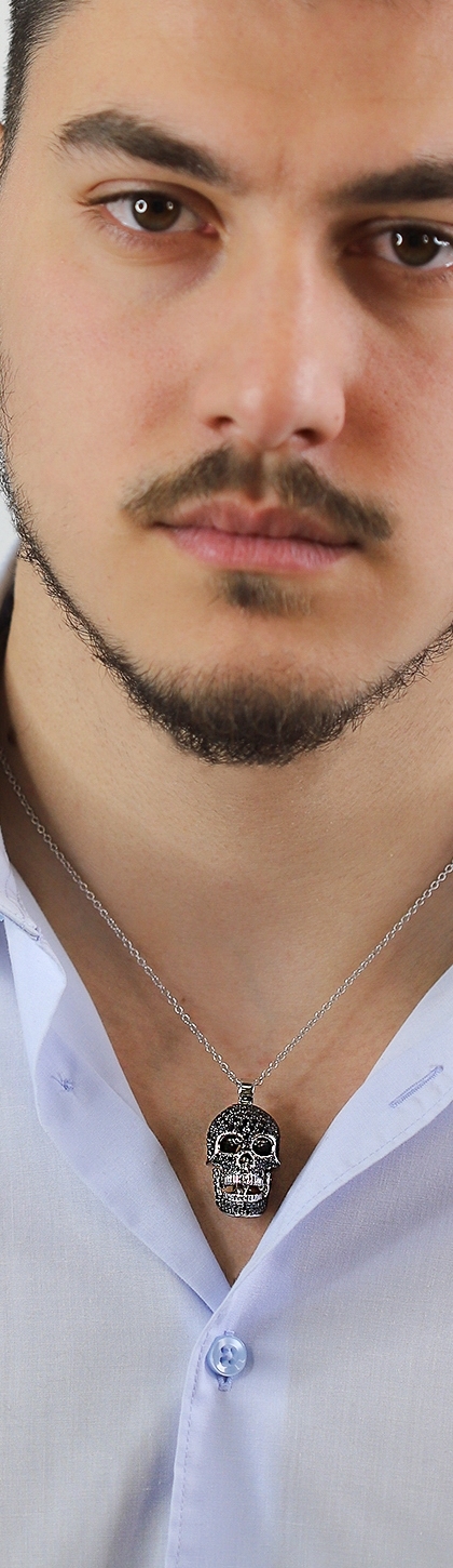 Collar en oro blanco 18k con colgante skull y diamantes