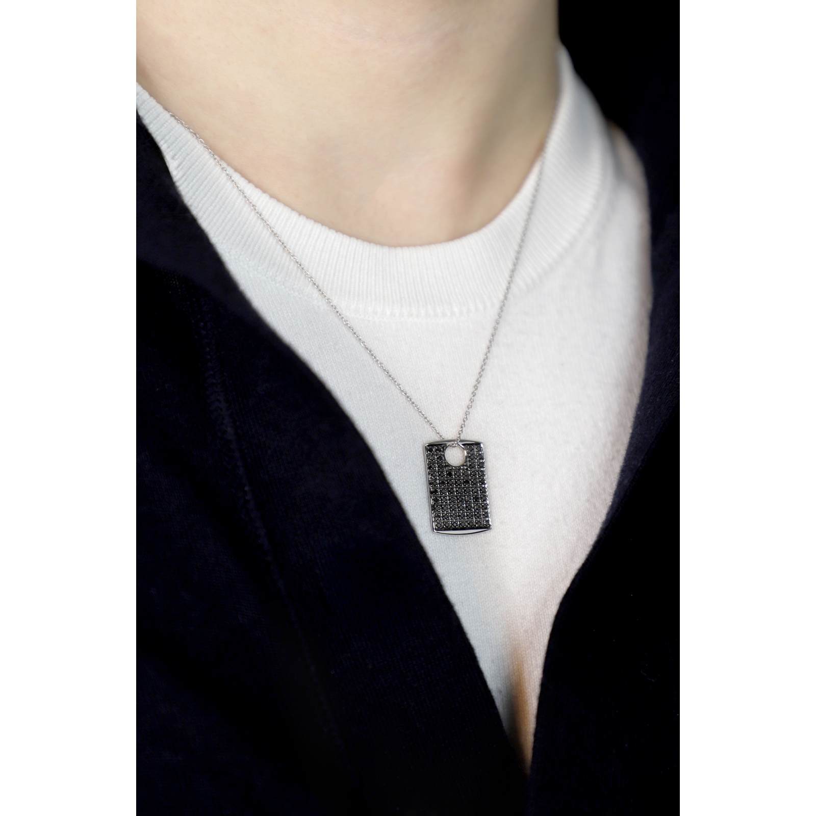 Collar en oro blanco 18k con colgante de diamantes negros 50 cm