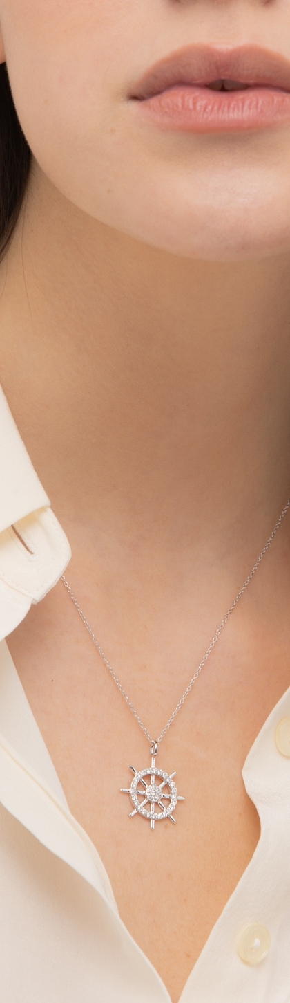 Collar oro blanco de 18 quilates con colgante de timón en diamantes