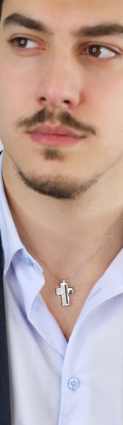 Collar con cruz de oro blanco de 18 kilates para hombre con diamantes