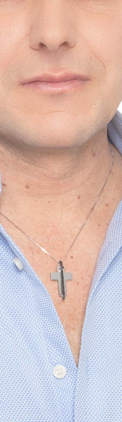 Collar con cruz para hombre en oro blanco 18 quilates y diamantes negros