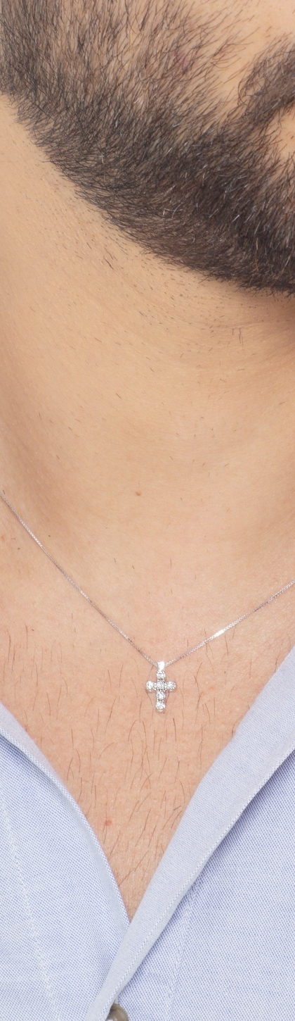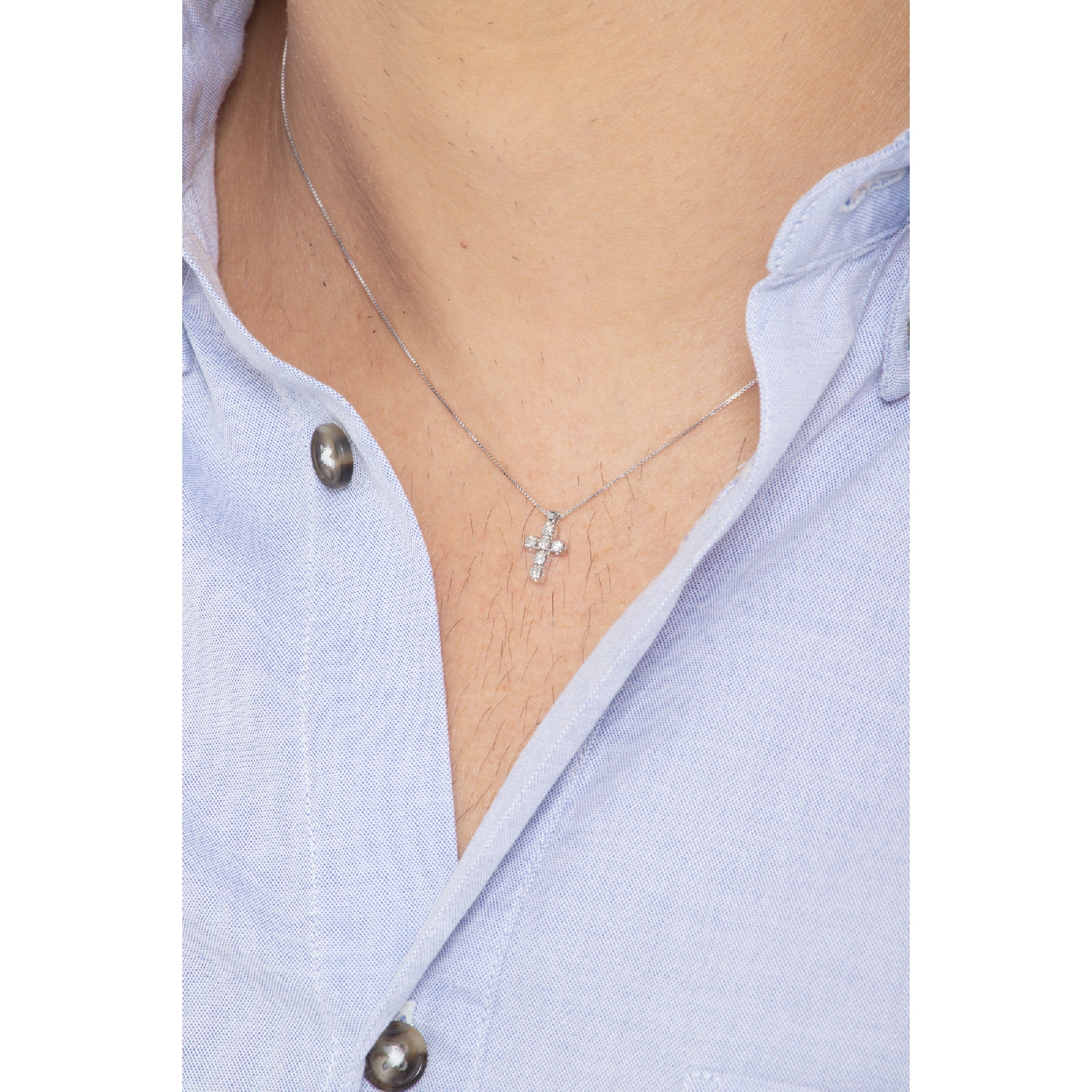 Collar cruz diamantes Oro Blanco 18k 50 cm