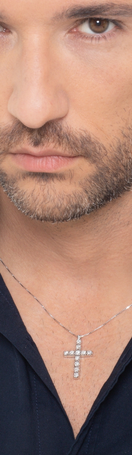 Collar en oro blanco de 18 quilates con cruz y diamantes