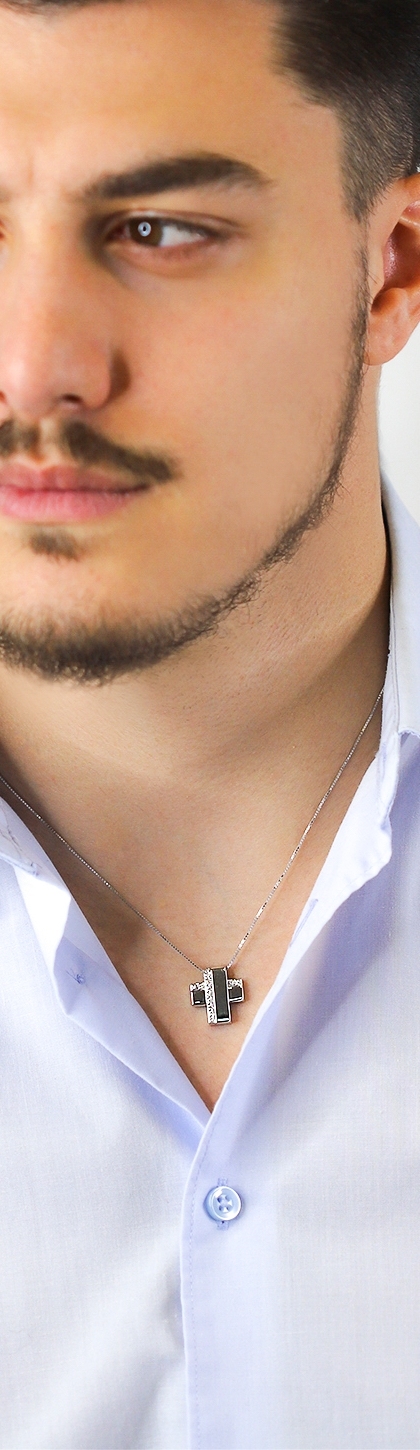 Collar para hombre con cruz en oro blanco de 18k y diamantes