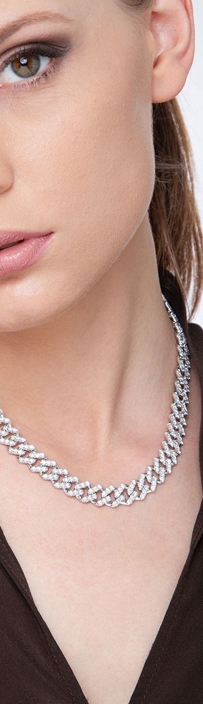 Cadena cubana en oro blanco de 18k engastada con diamantes