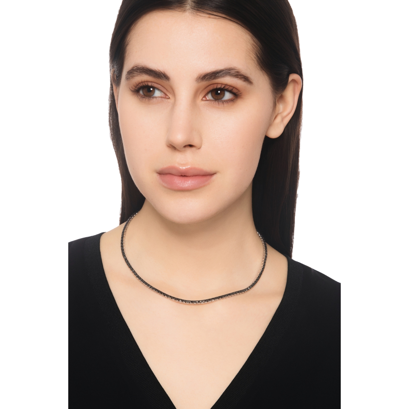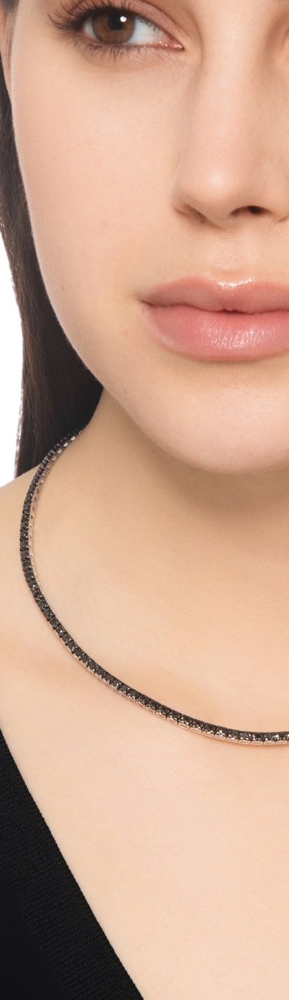 Collar tenis lineal pirámide oro blanco 18k con diamantes negros