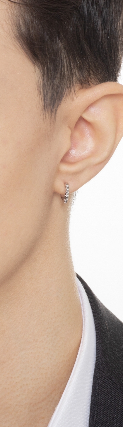 Pendiente único aro en oro blanco 18kt con diamantes hombre