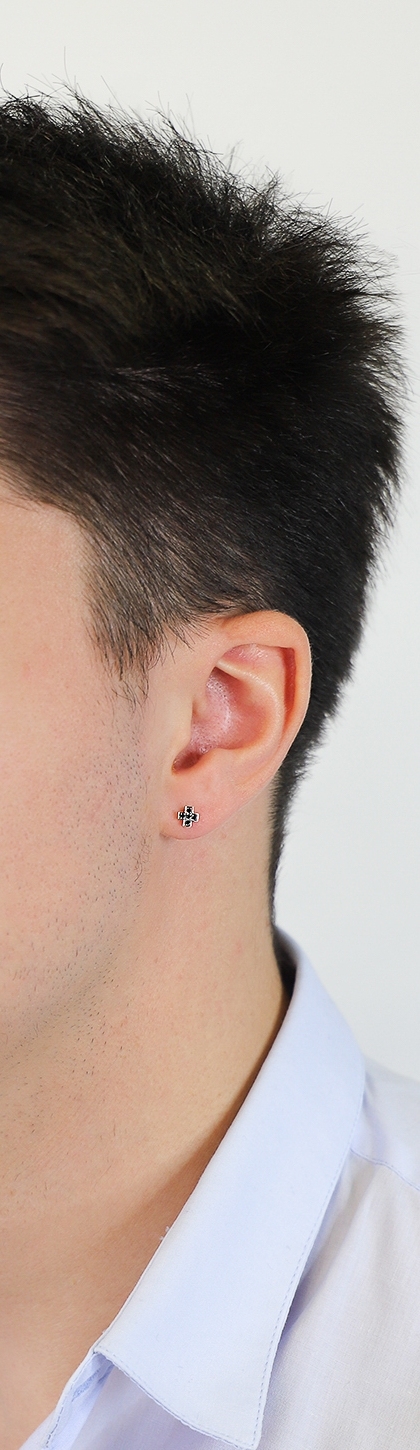 Botón en oro rosa de 18k con cruz de diamantes negros y puntas brunidas