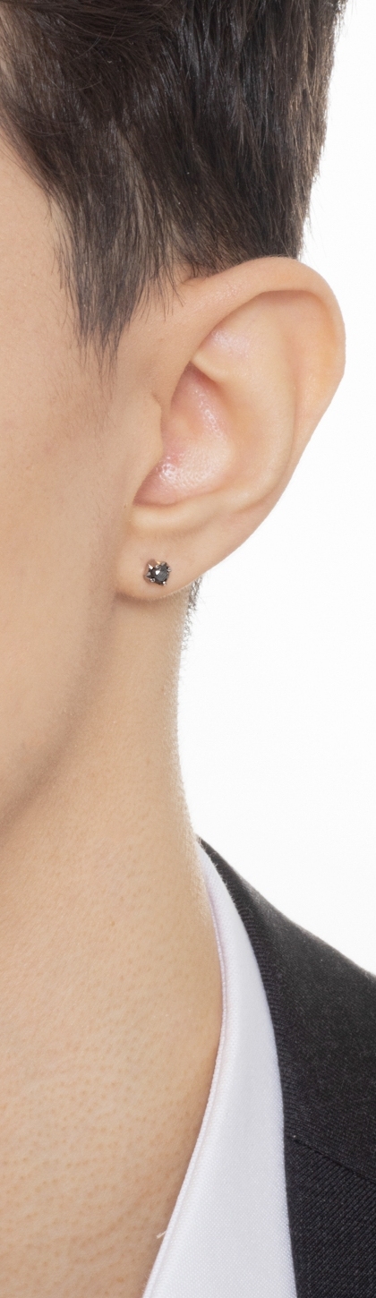 Pendiente hombre mono en oro blanco 18ct 4 garras con diamante negro