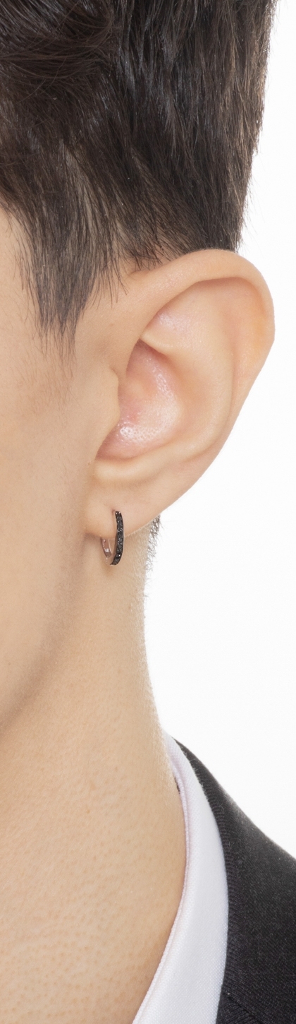 Pendiente mono aro en oro blanco de 18k con diamantes negros
