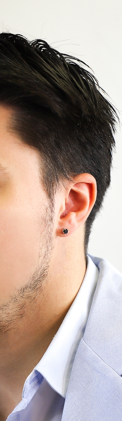 Pendiente mono en oro blanco de 18k a 4 garras con diamante negro